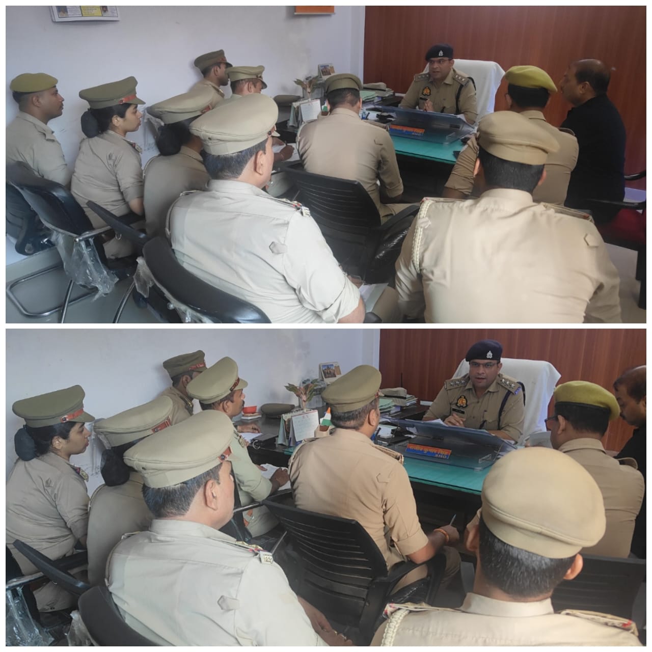 थाना लालपुर पांडेयपुर पर ब्रीफिंग के दौरान थाना प्रभारी राजीव कुमार सिंह के साथ ही समस्त चौकी प्रभारी व पुलिसकर्मी रहे उपस्थित