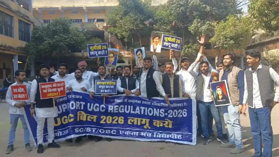 वाराणसी: धर्म और शिक्षा की नगरी काशी के प्रतिष्ठित हरिश्चन्द्र स्नातकोत्तर महाविद्यालय में शनिवार को छात्रों का भारी उत्साह और विरोध प्रदर्शन देखने को मिला। यूजीसी (UGC) के समर्थन में अपनी आवाज बुलंद करने के लिए कॉलेज के सैकड़ों छात्र सड़कों पर उतरे। हरिश्चन्द्र स्नातकोत्तर महाविद्यालय के छात्रों ने अपनी मांगों को लेकर न केवल परिसर बल्कि मैदागिन क्षेत्र में भी विरोध जुलूस निकाला।