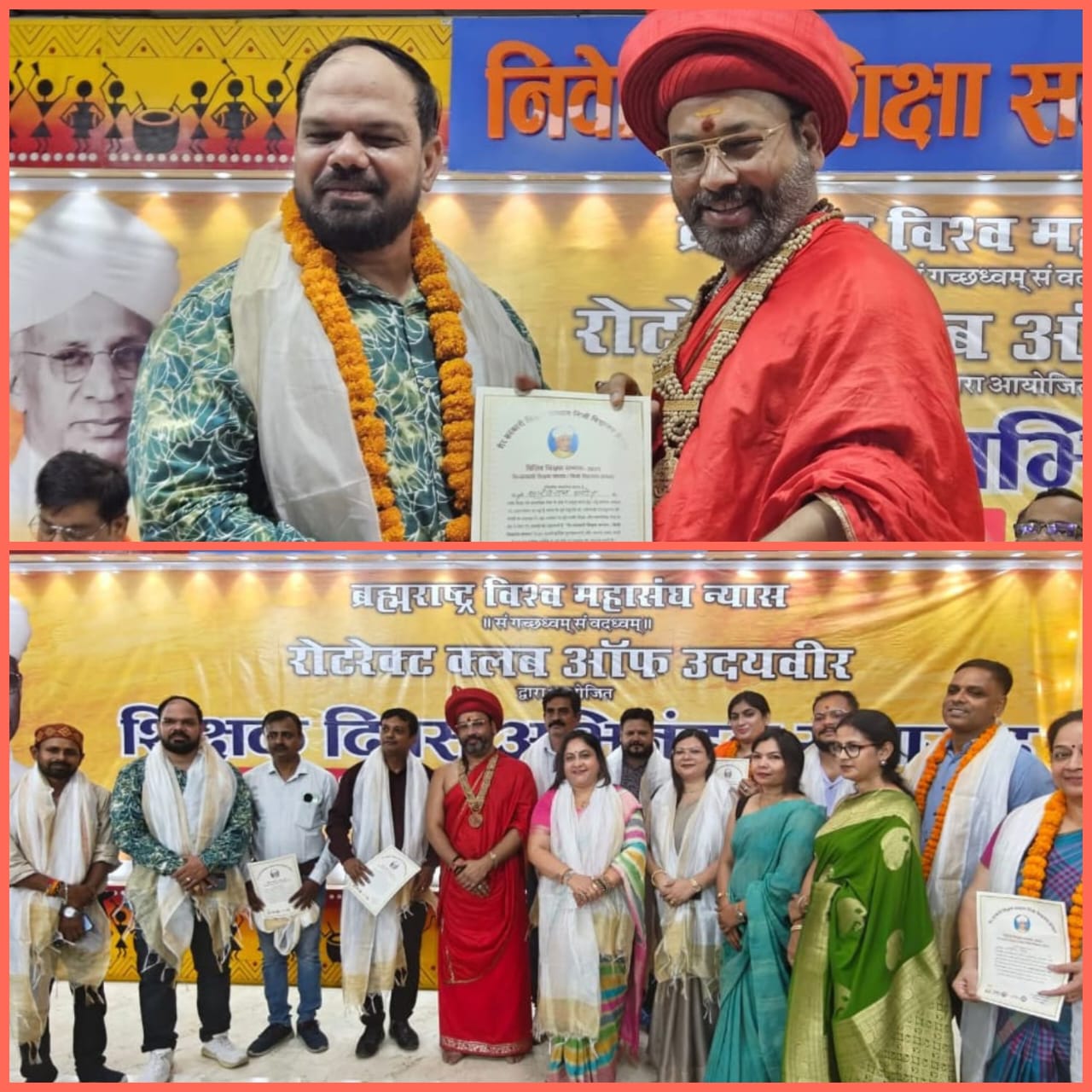 “शिक्षक राष्ट्र के कुम्हार हैं” कार्यक्रम में पूज्य महाराज श्री श्री 1008 डॉ. सचिन्द्र नाथ महाराज का उद्बोधन बेहद प्रेरक था। उन्होंने शिक्षकों की तुलना कुम्हार से करते हुए कहा कि जिस प्रकार कुम्हार मिट्टी को तराशकर सुंदर और उपयोगी पात्र बनाता है, उसी प्रकार शिक्षक अपने छात्रों को तराशकर उन्हें डॉक्टर, इंजीनियर, वैज्ञानिक और समाज का एक बेहतर इंसान बनाते हैं।