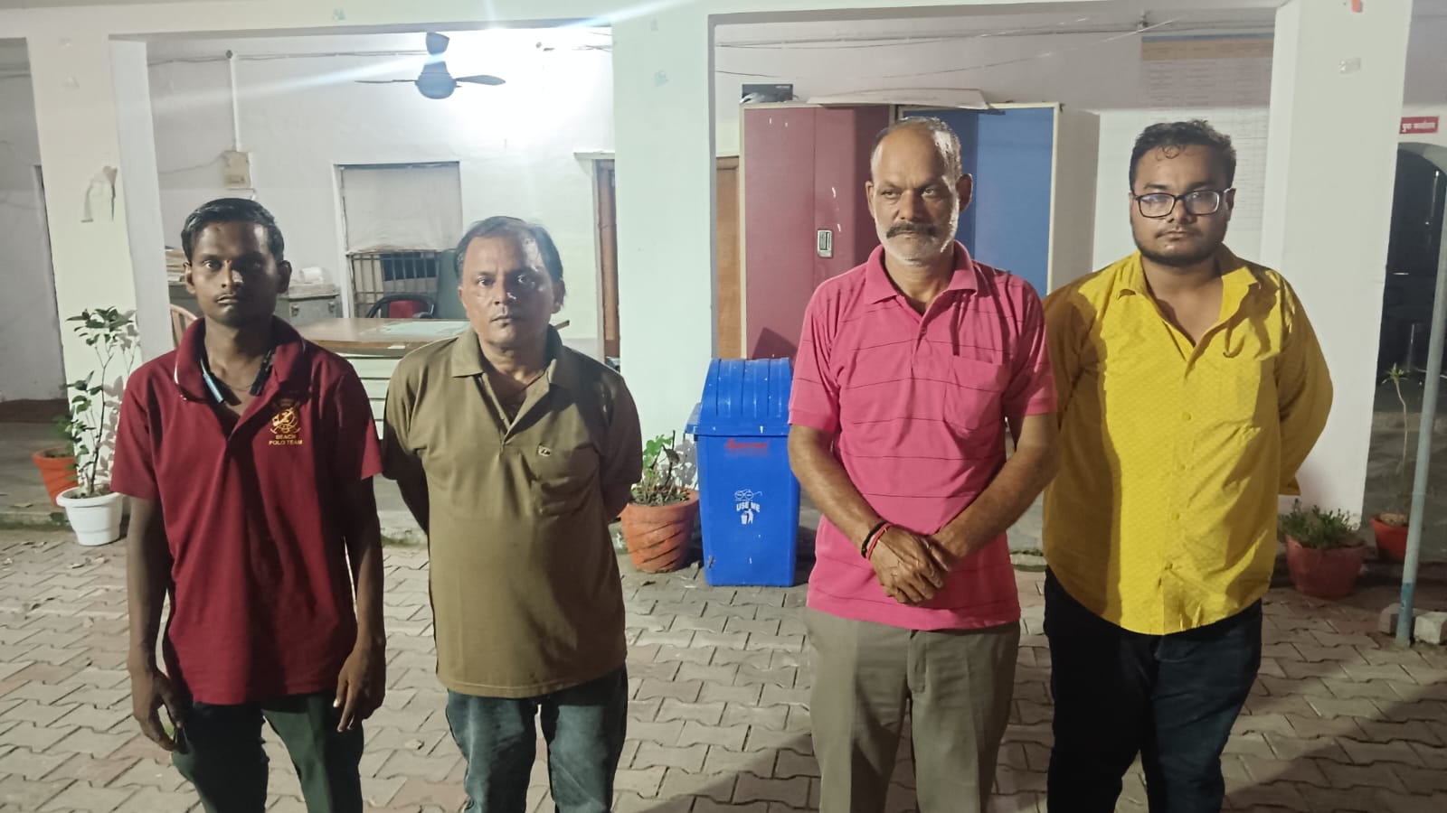 पकड़े गए व्यक्तियों का विवरण: सुनील कुमार मिश्रा: पुत्र बैकुंठ नाथ मिश्रा, जिला मुजफ्फरपुर, श्रेयांश सिंह: पुत्र सुरेश ठाकुर, मुजफ्फरपुर, धर्मेंद्र कुमार श्रीवास्तव: पुत्र विजय नारायण श्रीवास्तव, निवासी टिकटकपुर रोड, थाना कैंट, प्रमोद कुमार: पुत्र पन्नालाल, निवासी आशापुर, बलुआ रोड, सारनाथ, देवीलाल सोनकर: पुत्र राम लखन सोनकर, सलारपुर, थाना सारनाथ, वाराणसी।